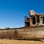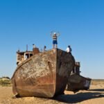 Uzbekistan, Muynak aral sea, boat, desert, dog, fotografia, jezioro, jezioro aralskie, koza, krowa, łódź, morze, photography, pustynia, ruina, sea, wrak